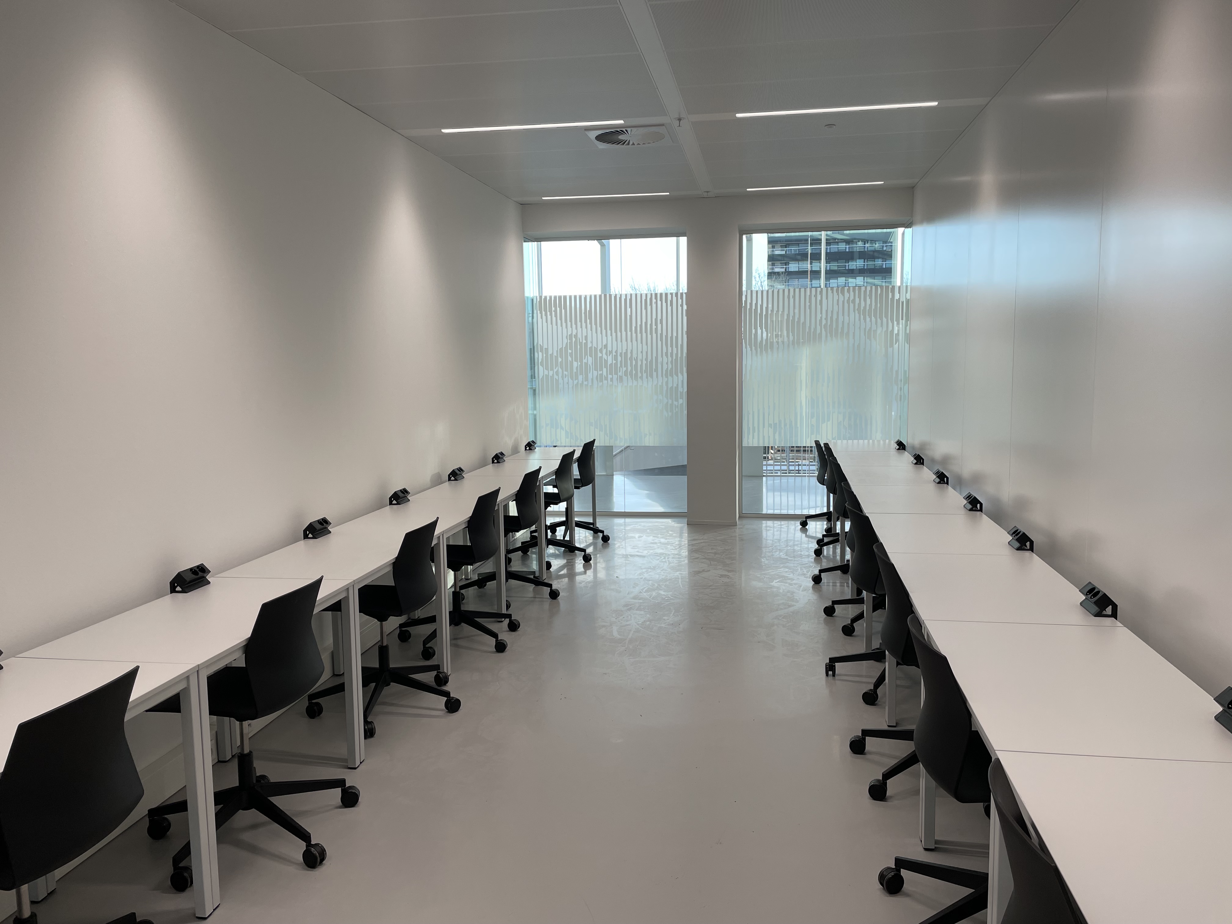 Every PhD/postdoc office will be equipped with new office chairs and white desks (160*80cm) that are electronically adjustable in height to a sitting or standing position.