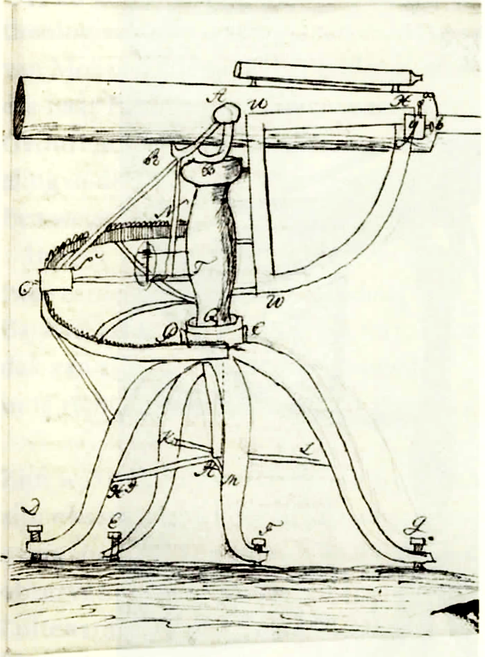 This instrument was once one of the largest reflecting telescopes available in Europe. In the eighteenth century, various astronomers had a keen eye on this instrument. One of them was the French astronomer Joseph-Nicolas de l'Isle (1688-1768). In the year 1785 he was busy searching the heavens for a comet, the return of which was already reported in 1698 by the English astronomer Edmund Halley (1656-1742). This comet was all the more eagerly awaited because its return would provide a first confirmation of Newton's hypothesis regarding the elliptical orbit of these celestial bodies. Through an unnamed contact, De l'Isle had learned of some simple observations that the owner of the instrument — the Amsterdam merchant Jacobus van de Wall (1700-1782) — had carried out with his large telescope in the previous year. This was reason enough for De l'Isle to inquire about this Curieux d’ Amsterdam — which seemed— an extremely large telescope. Could this telescope perhaps be used for a search for the comet? — Arnout Vosmaer, the Hague administrator of the natural science collections of stadhouder William V, however, had to disappoint De l'Isle. In his response he stated that although van de Wall owned an exceptionally good telescope, this beautiful device was hardly used for astronomy. Vosmaer could, with De l'Isle, only regret that such a beautiful 'machine', the excellent quality of which every astronomer recognized, was not in more capable hands.