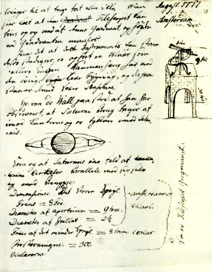 The fact that Van de Wall was so rarely in the spotlight with his telescope is undoubtedly also related to the fact that so little was done with it. The only known observation made by Van de Wall was recorded thanks to Bugge. This involved an observation of the planet Saturn, where Van de Wall claimed he had seen Saturn's rings narrowing near the edges and thickening near the planet itself. He had also seen several rings on the surface of Saturn, parallel to each other and to the large ring.