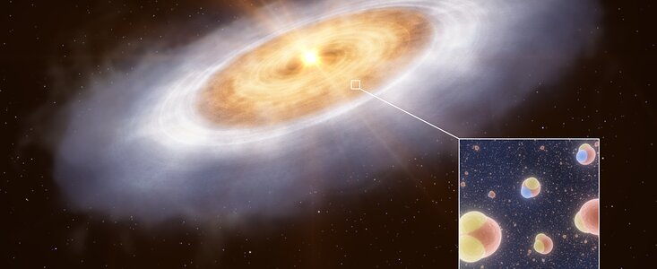 - Een internationaal onderzoeksteam onder leiding van Melissa McClure (Sterrewacht Leiden) heeft voor het eerst het moment vastgesteld waarop zich planeten beginnen te vormen rond een andere ster dan onze zon. Met behulp van de ALMA-telescoop, waarin de Europese Zuidelijke Sterrenwacht (ESO) partner is, en de James Webb ruimtetelescoop (JWST), hebben ze het ontstaan van de eerste stukjes planeetvormend materiaal waargenomen – hete mineralen die net beginnen te stollen. Het resultaat is vandaag gepubliceerd in Nature.