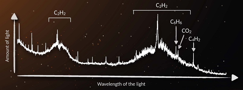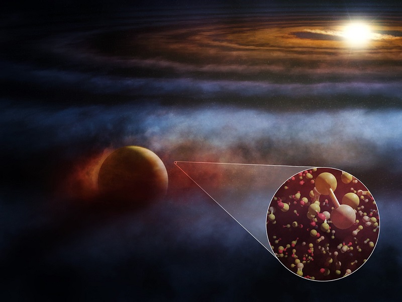 - Een internationaal team van sterrenkundigen met daarbij diverse Nederlandse onderzoekers heeft voor het eerst het gas benzeen (C6H6) waargenomen in een planeetvormende schijf rond een jonge ster. Naast benzeen zagen ze veel andere, kleinere koolstofverbindingen en weinig zuurstofrijke moleculen. De waarnemingen duiden erop dat de planeten die in deze schijf ontstaan, net als onze aarde, relatief weinig koolstof bevatten. De wetenschappers publiceren hun bevindingen donderdagavond in het vakblad Nature Astronomy.