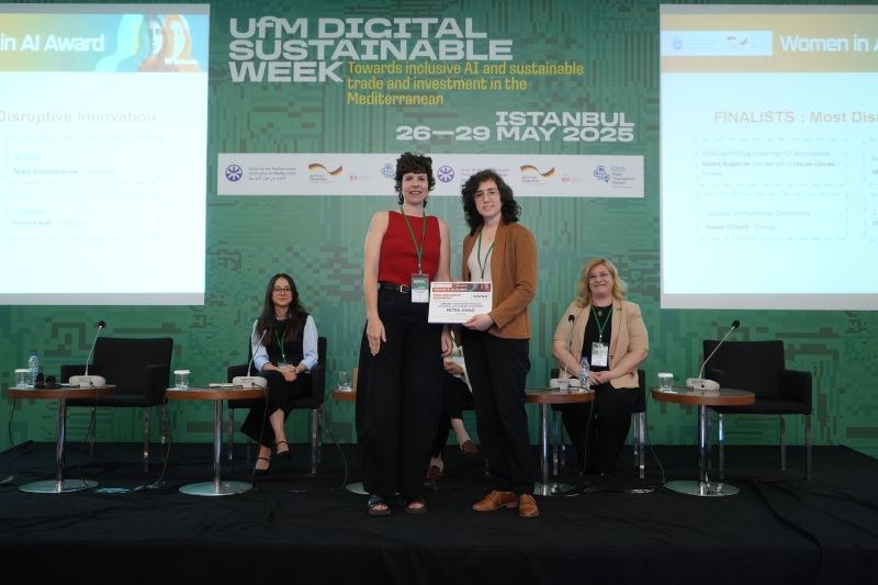 - Petra Awad, a postdoctoral scientist and software developer at the Leiden Observatory, has received a Women in AI award at the first UfM Digital Sustainable Week in Istanbul. These awards recognise women leading transformative AI projects that have a tangible positive social impact and are organised by the Union for the Mediterranean (UfM). Petra received the "most disruptive innovation" award for her 1-DREAM project, a toolbox composed of Machine Learning methodologies whose aim is to extract and analyse filamentary structures within large astrophysical datasets.