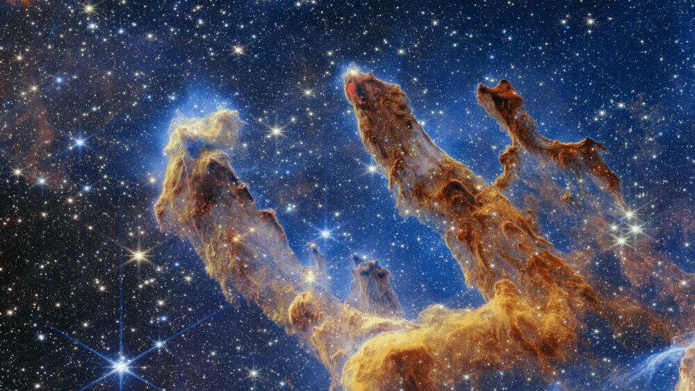 IMAGE: JWST-image of the protostellar system L1527 IRS. The protostar is embedded within a cloud of dust, gas, and ice (including semi-heavy water ice) that feeds its growth. (c) NASA/ESA/CSA/STScI