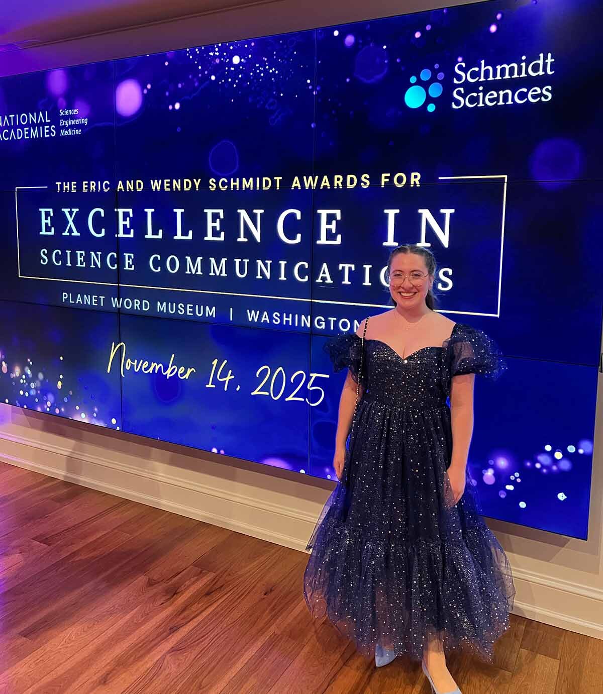 IMAGE | Teresa Paneque Carreño at a ceremony in Washington, D.C. for the 2025 Eric and Wendy Schmidt Awards for Excellence in Science Communications.